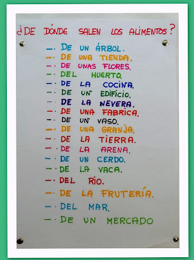 Trabajamos con las etiquetas que han traído al cole, seleccionamos y elegimos las de los alimentos que le gustan más, la forma que tienen los envases, las palabras ,etc, etc,
